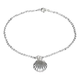 Sterling Silver Cable Chain and Scallop Shell Anklet: Jewelry