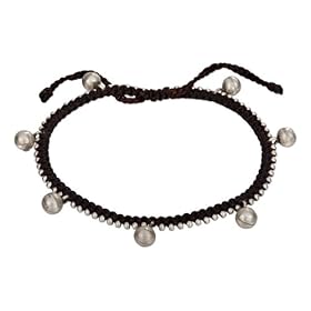 Sterling Silver Adjustable Brown Cotton Waxed Thread Chime Ankle Bracelet: Jewelry