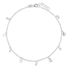 Sterling Silver 925 Ankle Bracelet Anklet Moon Stars Celestial Charms - Nickel Free: Jewelry