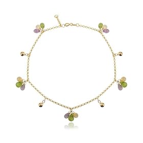 14k Yellow Gold Anklet (Ankle Bracelet) with Colorful Topaz Crystals, Yellow Gold: Jewelry