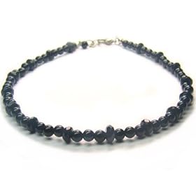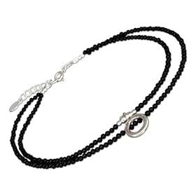 Sterling Silver 9 inch Black Agate Beads Anklet with Ring Charm: Jewelry