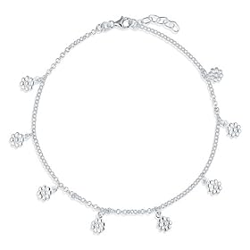 Sterling Silver Anklet Ankle Bracelet with Daisy Flower Charms: Jewelry