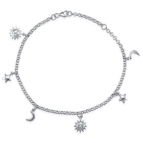 Sterling Silver Anklet Ankle Bracelet with Sun Moon Stars Charms: Jewelry