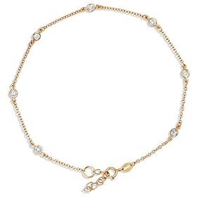 14k White Gold Bow Bezel 0.12 Carat Diamond Ankle Bracelet: Jewelry