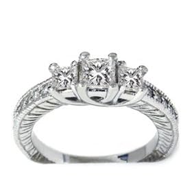 Antique 1.00 Ct Princess Cut Diamond Engagement 3 Stone Vintage Anniversary Ring: Jewelry