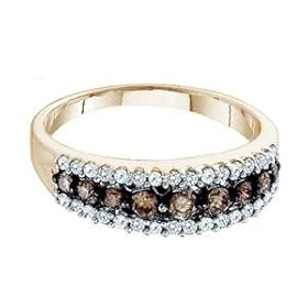 1/2 Chocolate & White Diamond 10k Yellow Gold Wedding Anniversary Ring: SeaofDiamonds: Jewelry