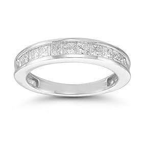 14k White Gold Princess-Cut Diamond Channel-Set Wedding / Anniversary Ring (H-I/SI 0.50 ctw): Jewelry