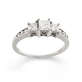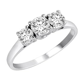 14K White Gold 3 Three Stone Round Brilliant Diamond Anniversary Ring (4/5 cttw) - Size 8: DivaDiamonds: Jewelry