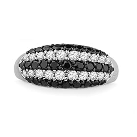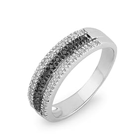 10KT White Gold Black And White Round Diamond Anniversary Ring (1 cttw): D-GOLD: Jewelry