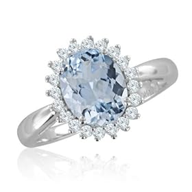 Cluster Natural Aquamarine and Diamond Ring in 14k White Gold (H, SI2, 1.68 cttw) Certificate of Authenticity: My Love Wedding Ring: Jewelry