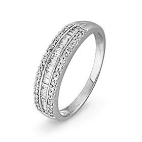 10KT White Gold Baguette and Round Diamond Anniversary Ring (1/4 cttw): D-GOLD: Jewelry
