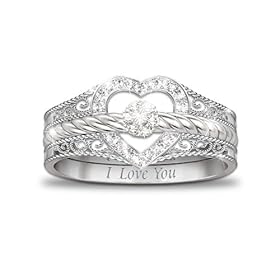 "I Love You" Heart-Shaped Diamond Stacking Rings by The Bradford Exchange: The Bradford Exchange: Jewelry