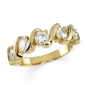 Gorgeous! Women"s 14k Yellow-gold Moissanite 4MM 11/4 CT TW 5 stone Anniversary band.: Jewelry