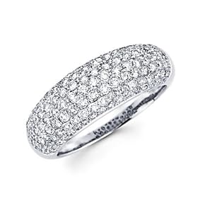 Size- 13 - 14k White Gold Round Diamond Pave Dome Ring Band 1.30ct (G-H Color, SI2 Clarity): Jewelry