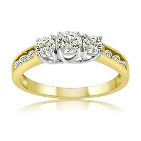 10K Yellow Gold Three Stone Plus Diamond Anniversary Ring 1ct total weight ( Available Sizes 5-8): Jewelry