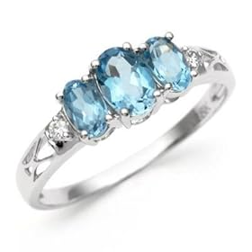 14k white gold 3 Stone Blue Topaz and Diamond Ring Size 6: Jewelry