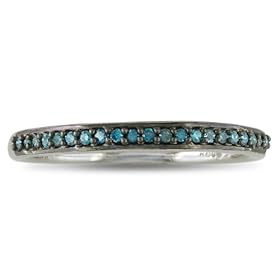 10K White Gold Blue Diamond Band Ring (1/10ct tw Sizes 4-10): Jewelry