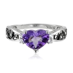 Heart Natural Amethyst and Diamond Ring in 10k White Gold, 1.29 cttw, Certificate of Authenticity: My Love Wedding Ring: Jewelry