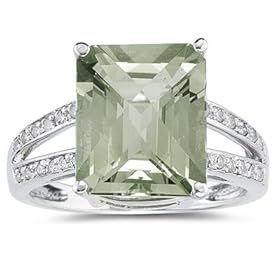 Emerald Cut Green Amethyst and Diamond Ring 10k White Gold: SZUL: Jewelry