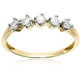 14k Yellow Gold 5-Stone Shared-Prong Diamond Ring (1/4 cttw, I-J Color, I1-I2 Clarity), Size 8: Jewelry