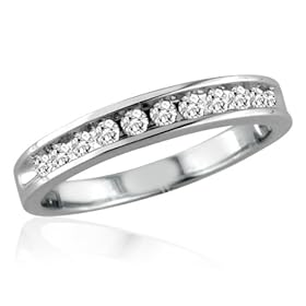 10K White Gold Ladies Channel Set Diamond Anniversary Ring (1/4cttw. Sizes 5-7 1/2): Jewelry