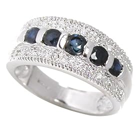 1.1ct Genuine Natural Sapphire Gemstone and Diamond 10k White Gold Ring(Last One): Jewelry