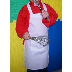 WHITE APRON KIDS CHILDREN FITS 7-12 YR OLDS 19x28 INCHES REAL FABRIC 100% POLY NICE GIFT or PARTY FAVOR: Home & Kitchen