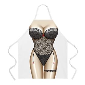 Attitude Apron Apron, Black Lingerie Apron, White, One Size Fits Most: Home & Kitchen