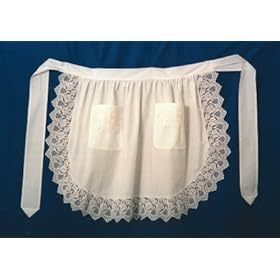 Battenburg Lace Trim Apron, 100% Cotton, White: Clothing