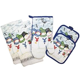 Snowmen Carol 5 Piece Kitchen Dish Towel - Pot Holder & Oven Mitt Set: Home & Kitchen