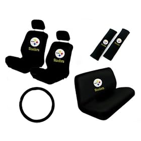 11 Piece NFL Auto Interior Gift Set - Pittsburgh Steelers - A Set of 2 Seat Covers, 1 Rear Bench Cover, 1 Steering Wheel, and A Set of 2 Seat Belt Pads: Automotive