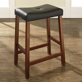 (Set of 2) Upholstered Saddle Seat Bar Stool in Classic Cherry Finish with 24 Inch Seat Height - Crosley Furniture - CF500224-CH: Home & Kitchen