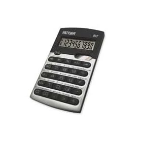 Victor Technologies Products - 12-Digit Desktop Calculator, w/ Cost/Margin, 6"x7-3/4"x1-1/4" - Sold as 1 EA - Desktop display calculator features a super large, easy-to-read, 12-digit tilt liquid crystal display (LCD). Cost-sell-margin keys allow you to solve CSM problems quickly and easily. Simply enter two variables, and the third appears. Other functions include three-key independent memory, tax rate keys, tax +/- keys, percent key, six decimal settings, round up/down feature, automatic const: Office Products