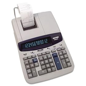 Victor Technologies Products - 14-Digit Calculator, 2-Clr Printing, 8-1/2"x12-1/4"x2-3/4", GY - Sold as 1 EA - Heavy-duty printing calculator offers two memories, two independent tax keys, and a 14-digit, fluorescent display. Print 5.2 lines per second in two colors. Easily calculate and print loan calculations, amortization schedule, present/future value, and days between dates. You can add, subtract, multiply and divide hours and minutes or minutes and seconds for time billing or payroll appli: Office Products