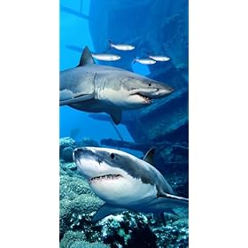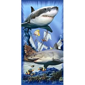Sharks Beach, Bath, Pool, Sauna Towel. (105069) Perfect for laying on the Sand. 100% Cotton. 30in x 60in.: Home & Kitchen