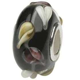 Purple on Black Murano Glass Sterling Silver Solid Core Bead fits European Charm Bracelet: Jewelry