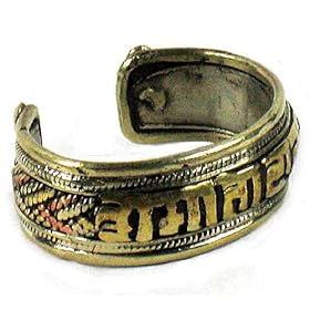 TIBETAN MEDICINE RING w/ "OM MANI PADME HUM" MANTRA ~ Three Metals Formula For Balance & Healing: Home & Kitchen