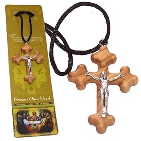 Byzantine olive wood extra-Smoothed Crucifix necklace ( 2 inches or 5 cm) - Necklace length is adjustable. With Certificate.: Arts, Crafts & Sewing