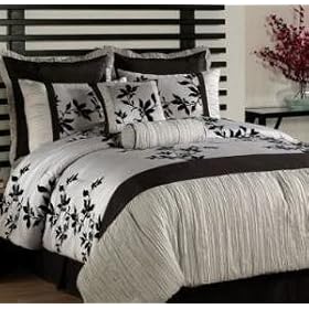 11 Piece King Black and Linen Floral Flocking Bed in a Bag Bedding Set: Home & Kitchen