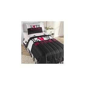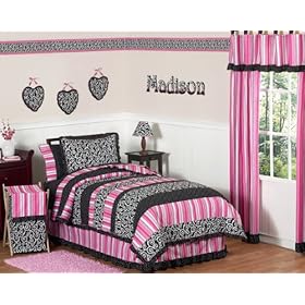 Pink and Black Madison Girls Kids & Teen Bedding 4pc Twin Set: Home & Kitchen