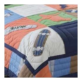 Skateboarding Blue Green White Boys Twin Bed Bag Set: Home & Kitchen