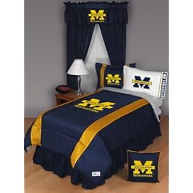 MICHIGAN WOLVERINES QUEEN BEDDING SET, Comforter, 4 pc Sheet Set, Boy FOOTBALL NCAA bag: Home & Kitchen