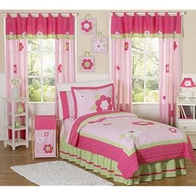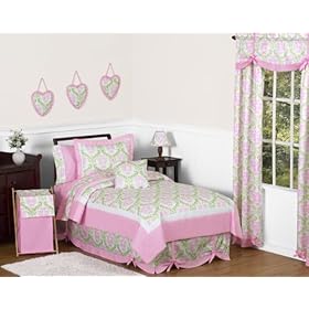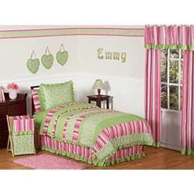 Pink and Green Olivia Girls Kids & Teen Bedding 4pc Twin Set: Home & Kitchen
