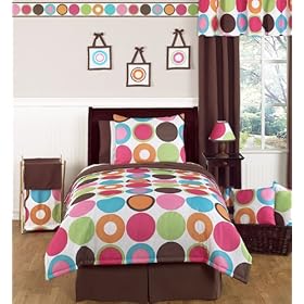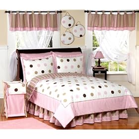 Pink and Brown Modern Dots Childrens Bedding 4pc Twin Set: Home & Kitchen