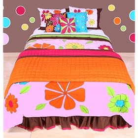 Bacati Valley of Flowers Fuschia/Orange Twin Quilt: Home & Kitchen