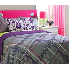 Gray Purple Girls Reversible Plaid Twin Comforter Set 3 Pieces: Home & Kitchen