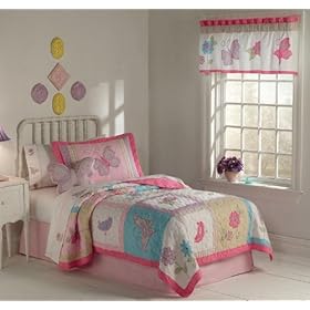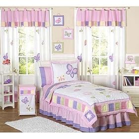 Pink and Purple Butterfly Collection Childrens Bedding 4pc Twin Set: Home & Kitchen
