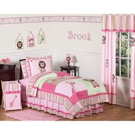 Pink and Green Girls Jungle Kids Bedding 4pc Twin Set: Home & Kitchen