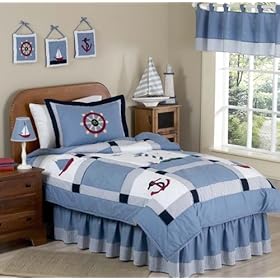 Nautical Nights Boys Sailboat Childrens Bedding 4pc Twin Set: Home & Kitchen