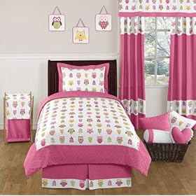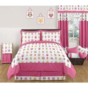 Pink Happy Owl Kids Bedding 4 pc Twin Set by JoJO Designs: Home & Kitchen
